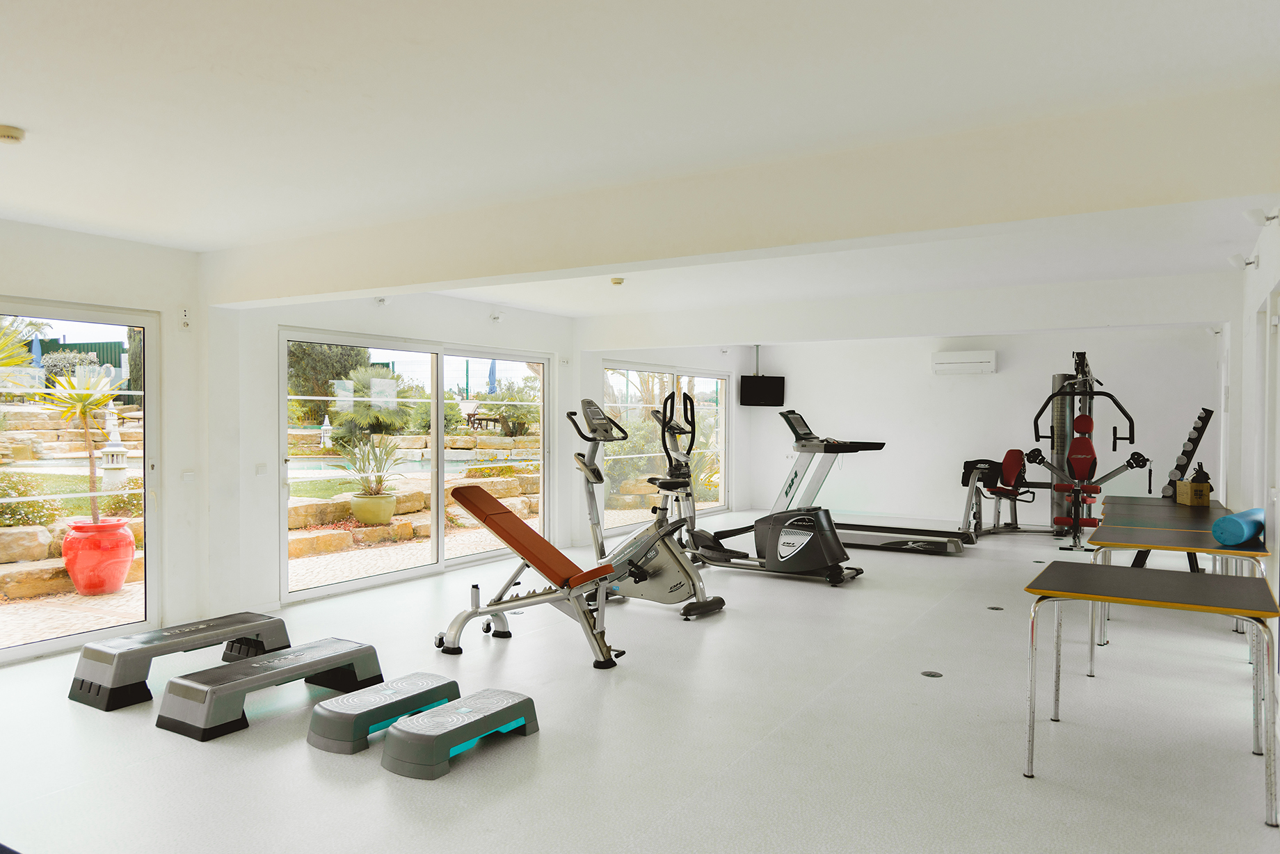 Er is een buitenzwembad met jacuzzi (tegen betaling voor verwarming), een sauna en een volledig uitgeruste fitnessruimte. EEN